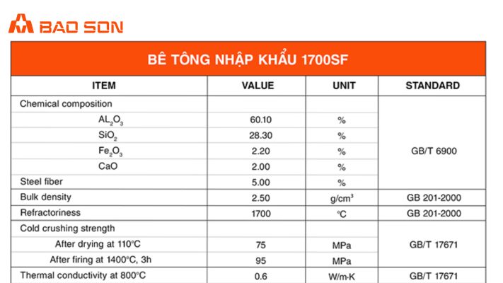 Thông số kỹ thuật của vật liệu bê tông chuyên dụng cho lò thép..