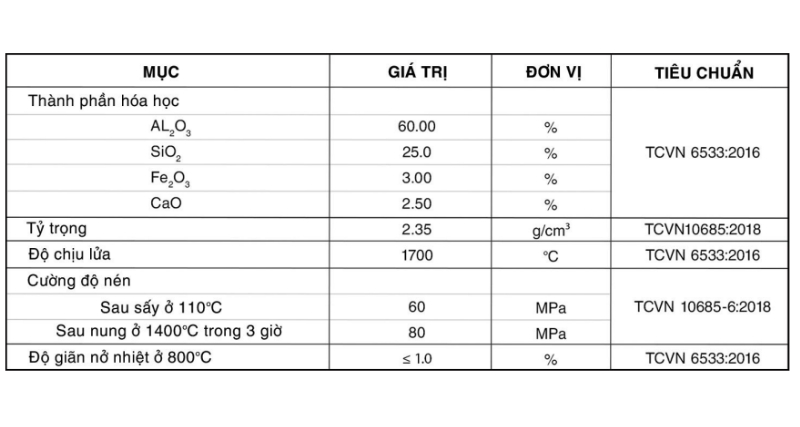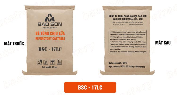Thông số kỹ thuật của bê tông chịu nhiệt BSC – 17LC